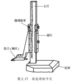 高度游標卡尺主要用于測量工件的高度和劃線用,但一般限于半成品加工。其讀數(shù)原理與游標卡尺相同。