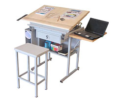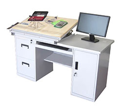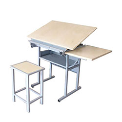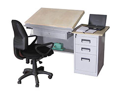 其中學(xué)生制圖桌經(jīng)過(guò)多年的改進(jìn),現(xiàn)具有外觀(guān)樣式新穎美觀(guān)、實(shí)用方便,配備齊全,輕巧大方,堅(jiān)固耐用、拆裝方便等特點(diǎn)。桌子可入置儀器、工具,下面抽屜供學(xué)習(xí)資料、工具書(shū)等。